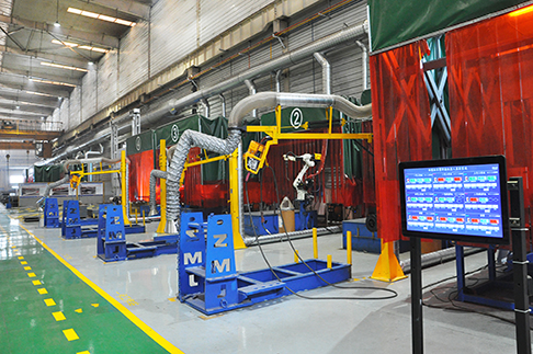 中部槽智能焊接機群,可實現(xiàn)機器人與溫控系統(tǒng)聯(lián)動,確保預熱溫度滿足要求,保證焊接質量